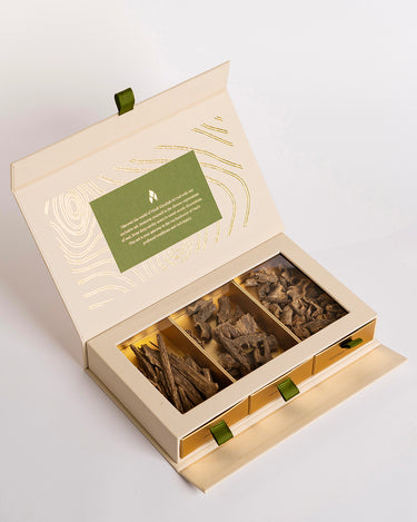 Our Oudh Discovery Set brings you the finest pieces of Agarwood, offering a rich, aromatic journey through the world of Oudh. Perfect for gifting or personal indulgence, experience the timeless elegance of Shama Perfumes in every piece.